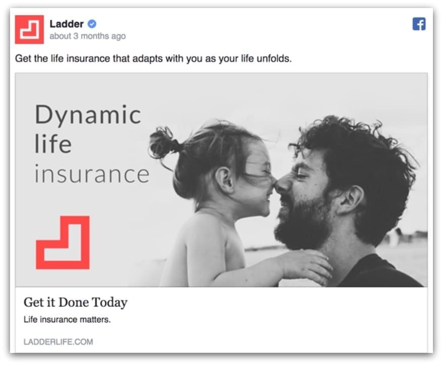 Ladder is an insurance company that specializes in providing dynamic insurance i.e. coverage that keeps changing from time to time, depending on your circumstances. In this powerful image ad, they’ve kept the concept easy to understand - caring for your loved ones. Who knew that a black and white stock image of a father and her daughter, together with some text and a colored logo would look great?