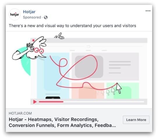 Hotjar is a platform that offers advanced web analytics tools. It provides tools like heat maps, visitor recordings, and conversion funnels, to name a few. With so many technical features to offer, you’d think that they’d opt for a video, slideshow, carousel, or even an Instant Experience ad to showcase them. In the ad shown above, they decided to keep things simple and stick with a good ol’ image. To make it stand out, they used a simple illustration of a webmaster/digital marketer examining a website with Hotjar. The lesson here is that no matter how complicated your product is, you can always find a simple and highly effective way to promote it.